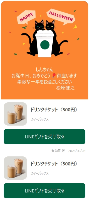 LINEギフトのスターバックスのドリンクチケット🎂